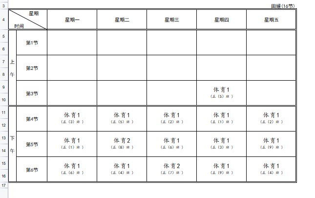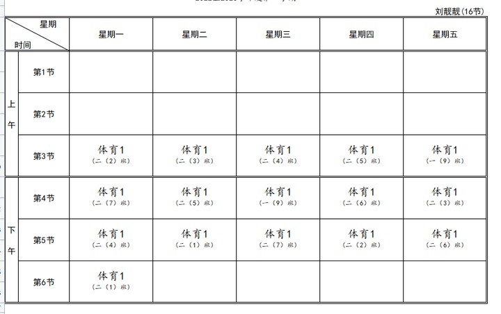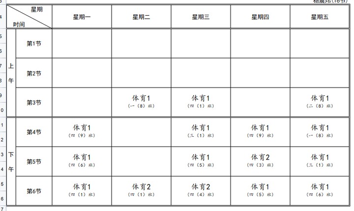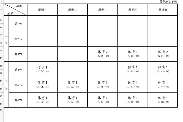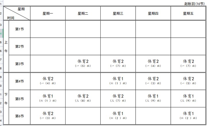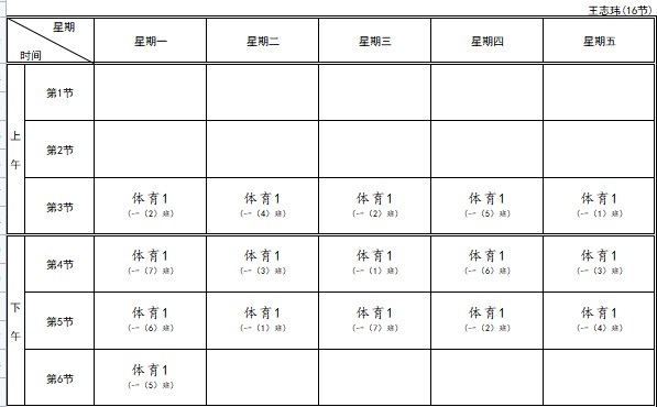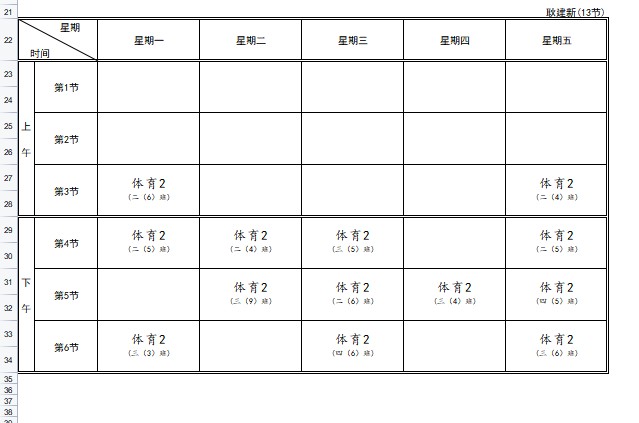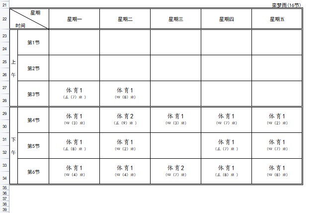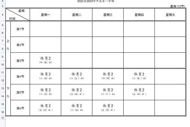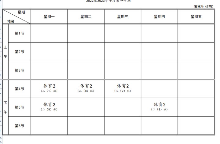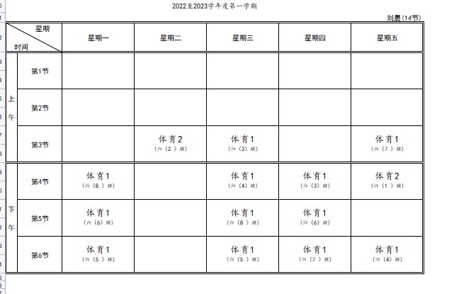 2022-2023学年范仲淹实验小学体育与健康总课程表